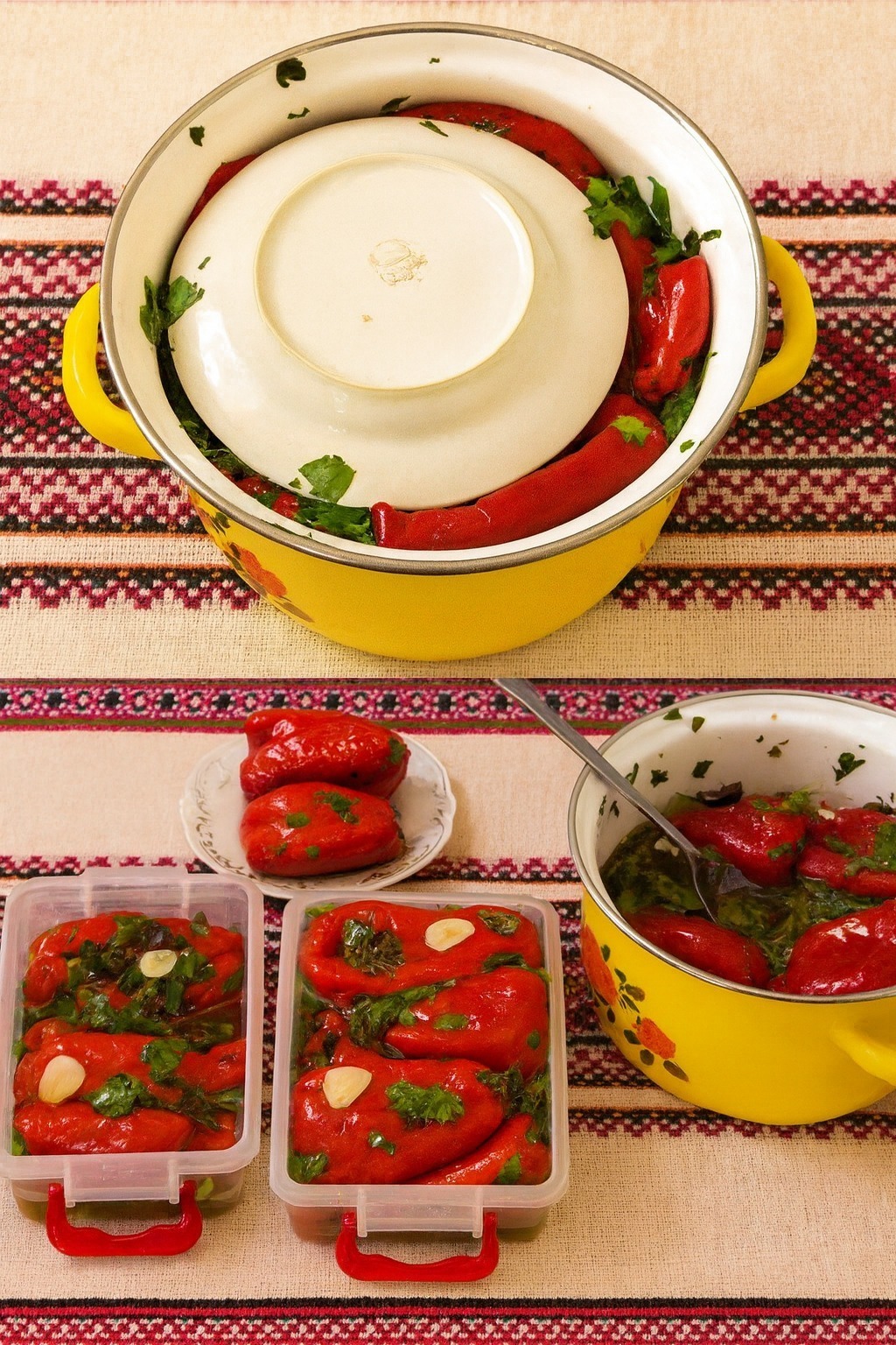 Îi coc la cuptor, îi marinez și după doar două ore sunt gata de savurat! Preparatul este atât de simplu, încât îl fac de mai multe ori pe săptămână în sezon. Rezultatul: ardei dulci și suculenți, cu o aromă inconfundabilă.