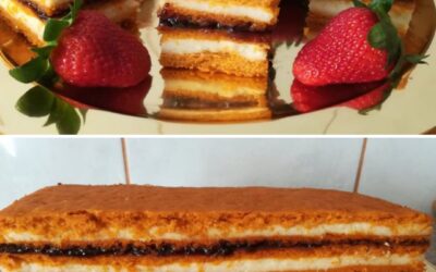 🍅🍓 Prăjitura de Post a Copilăriei: Foi cu Suc de Roșii, Cremă de Griș și Gem de Căpșuni O rețetă…