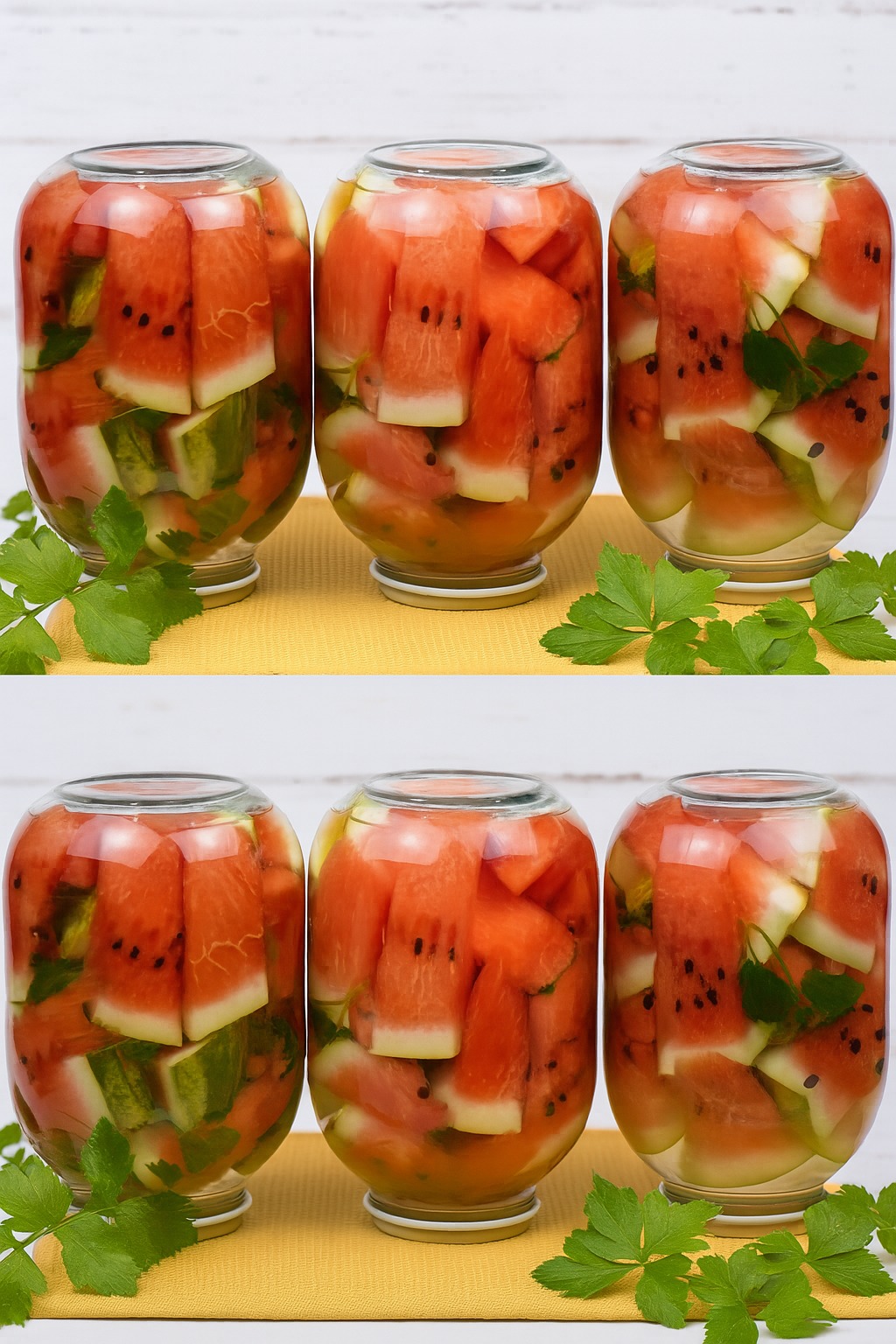 - Notă: Pepenele murat poate fi păstrat la rece, dar și la temperatura camerei. Este important ca borcanele să fie păstrate într-un loc mai întunecat și să nu fie expuse la razele directe ale soarelui.