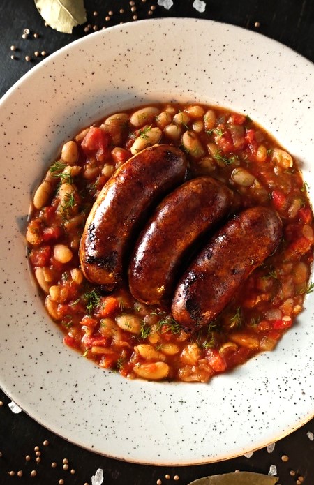 Vă prezentăm o rețetă autentică, îmbogățită cu aroma inegalabilă a cârnaților afumați de casă și cu legume proaspete, pentru a obține o fasole scăzută, cremoasă și plină de savoare.