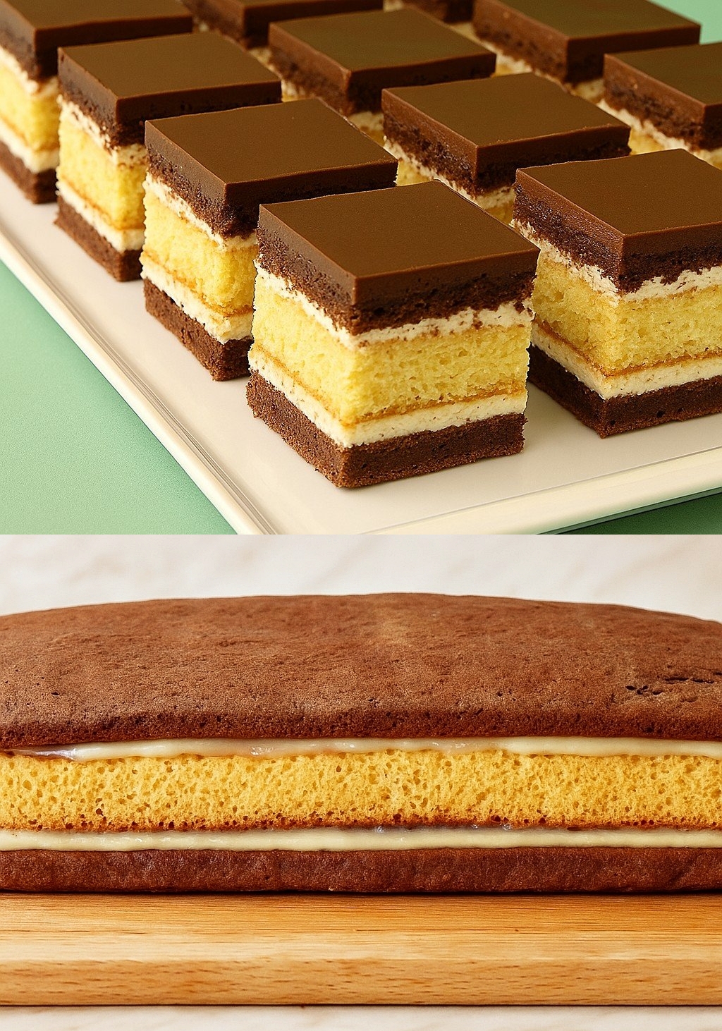 📺 Prajitura Televizor – Rețeta clasică cu foi fragede de cacao, pandișpan pufos și budincă fină de vanilie