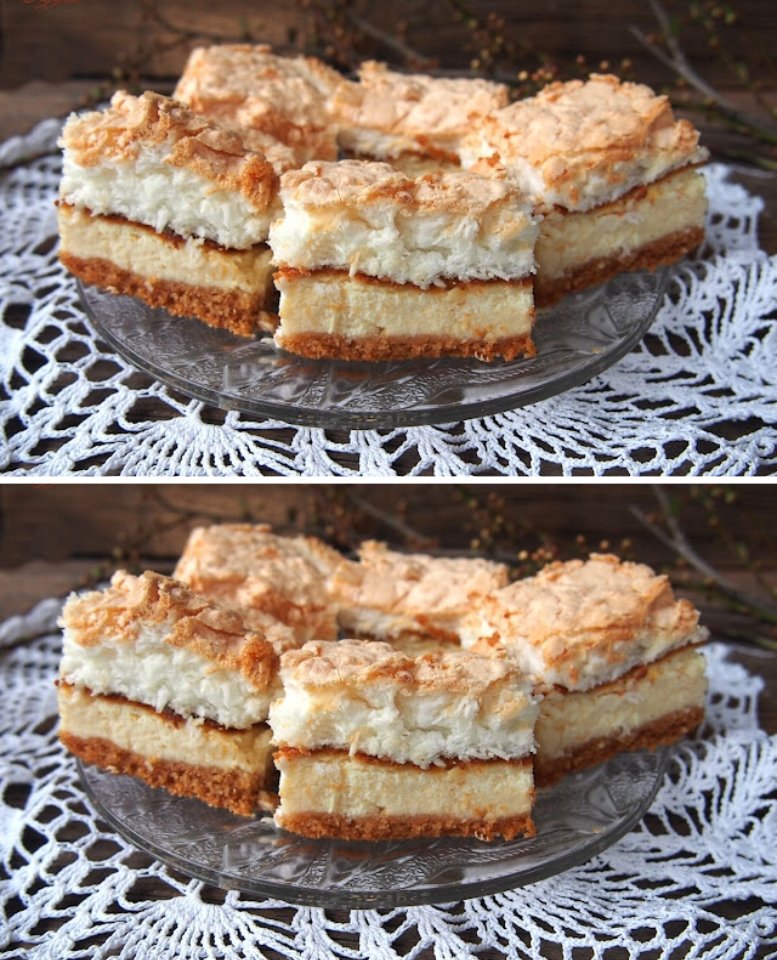 Recunosc, nu sunt genul care se încumetă des la deserturi complicate, dar prăjitura asta m-a cucerit de la prima vedere. Are tot ce-mi place: un aluat fraged, o cremă de brânză fină și o bezea cu cocos care se rumenește ușor deasupra, ca un nor dulce.