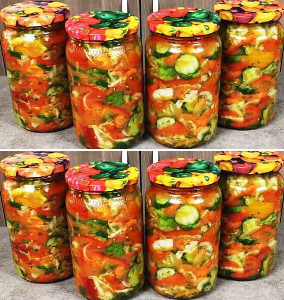 Un astfel de platou de legume nu este doar convenabil si practic, ci si foarte gustos: deschizi un borcan si imediat aroma unei salate de legume proaspete, foarte apetisante, de vara se imprastie prin casa. Pentru gatit veti avea nevoie de urmatoarele ingrediente: