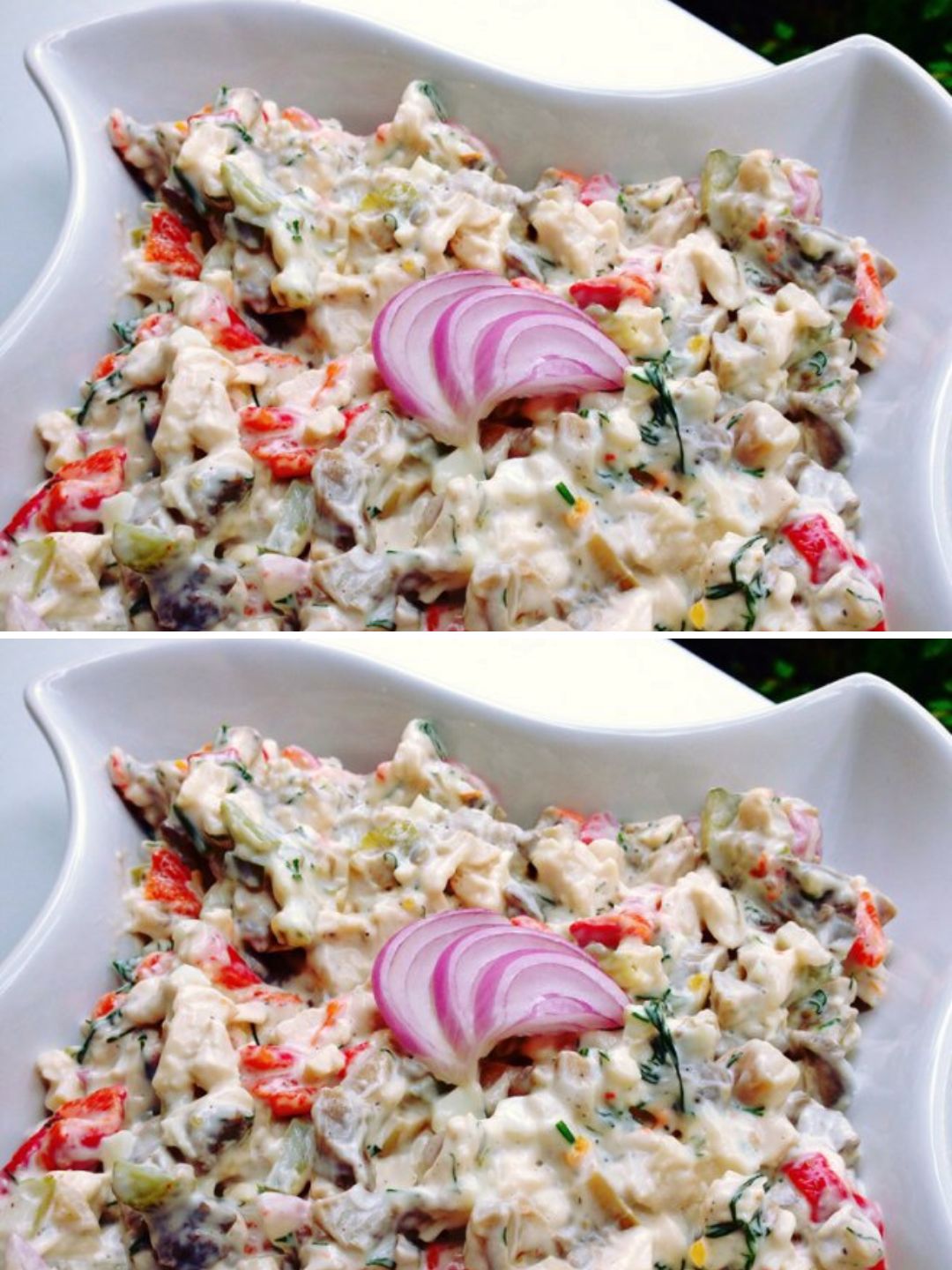 🍗 Salată de Pui cu Ciuperci și Maioneză: Aperitivul Clasic, Cremă și Sățios